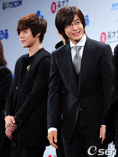 김현중 배용준이 14일 오후 일본 도쿄 JCB홀에서 열린 DATV 자선기획 '미소 프로젝트' 1탄 '메시지 투 아시아(Message to Asia)' 공식 포토세션 행사에 참석해 포즈를 취하고 있다.