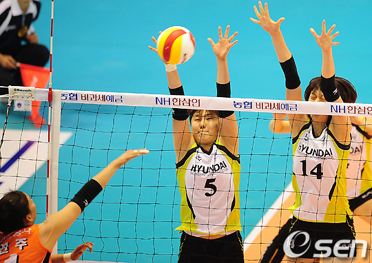 현대건설은 지난 19일 안방 수원실내체육관에서 벌어진 서울 GS칼텍스와 2010~2011 V리그 1라운드 경기서 세트 스코어 3-1 승리를 거뒀다. 상대의 리시브 불안을 틈 탄 서브 득점이 잇달아 성공을 거두며 지난 16일 선두 도로공사에 0-3 셧아웃 당한 충격파에서 벗어났다.