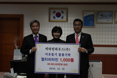 오산시는 이날 전달된 2500만원 상당의 비타민하우스 멀티비타민 1000통을 오산시 6개동 주민센터에서 기초수급자들을 대상으로 나눠 줄 예정이다.