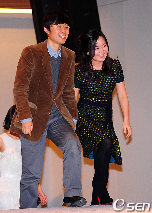 이재상 PD, 조정선 작가가 손을 잡고 무대에 오르고 있다. /jpnews@osen.co.kr