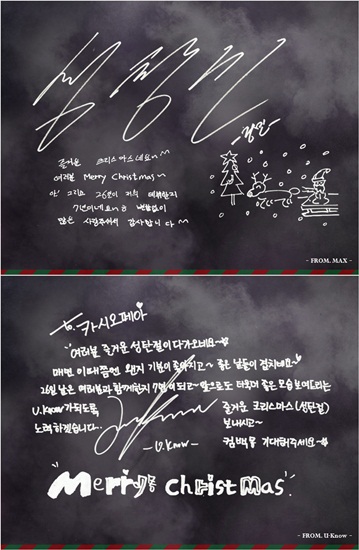 컴백을 앞두고 있는 동방신기가 크리스마스를 맞이해 친필로 크리스마스 인사를 전했다.