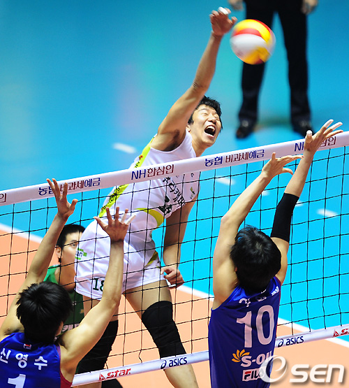 2세트 우리캐피탈 신영석이 강타를 날리고 있다. /sunday@osen.co.kr