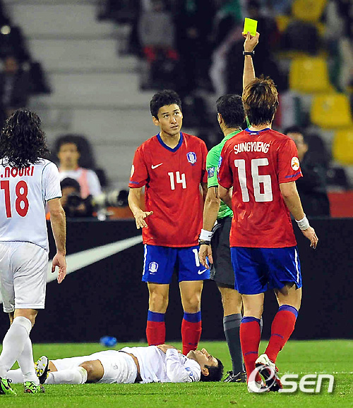 승리의 기쁨 뒤에는 어두운 그림자도 있었다. 수비수 이정수(알 사드)가 후반 32분 경고를 받아 경고 누적으로 인해 오는 25일 열리는 일본과 4강전에 출전할 수 없게 된 것.