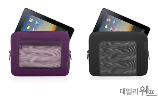 belkin ‘뷰 슬리브’는 겉면에 포켓이 있어 아이패드 주변기기를 함께 보관할 수 있다. 네오프렌 합성 소재를 사용하여 가벼우면서도 내구성이 강한 것이 특징이다. 독특한 질감의 표면이 iPad를 단단히 쥘 수 있도록 도와주며, 독특한 색상과 패턴은 디자인을 한층 돋보이게 해준다. 더불어 손세탁이 가능하다는 장점이 있다.