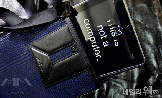 들고 다니기가 귀찮다면 맬 수 있는 가방을 소개한다. jadem에서 출시한 'jade S.BANE'은 아이패드에 딱 맞는 사이즈의 가방으로 소가죽 베지터블과 블루뱀피 스웨이드가 조화를 이룬다. 스포티한 느낌을 주는 크로스백으로 이동성이 중요하다면 눈여겨 볼만 하다.