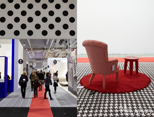 Hall7의 전시장은 샤넬 트위드와 블랙 앤 화이트 도트무늬의 인테리어 때문에 한층 더욱 럭셔리하고 화려한 느낌의 받을 수 있었다. 이 전시장은 이탈리아를 대표하는 건축가이자 무대장식가인 파올라 나본(Paola Navone)이 디자인했다.