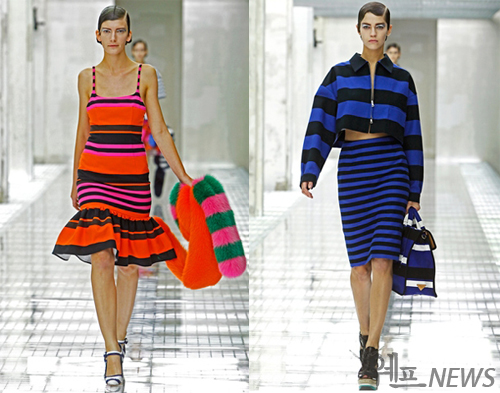 다양한 패션 브랜드들이 2011년 S/S 패션 키워드로 선택한 것은 바로 스트라이프. 스트라이프는 매년 사랑받는 아이템으로써 올 봄 ∙ 여름 해외 컬렉션에서 경쾌하고 화려한 비비드 네온 컬러가 돋보인다. 형형색색의 블록을 쌓은 듯한 스트라이프 아이템들에 주목할 것.
