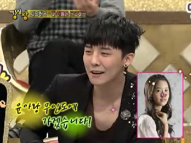 지드래곤이 이상형 월드컵에서 소녀시대 멤버 윤아, 티파니, 수영, 효연 가운데 최종 이상형으로 윤아를 꼽았다.