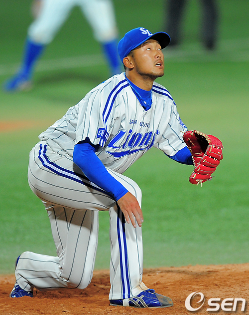 [OSEN=대구,지형준기자] 6일 오후 대구구장에서 열린 '2011 롯데카드 프로야구' 삼성 라이온즈와 롯데 자이언츠의 경기, 7회초 2사에서 삼성 권오준이 롯데 전준우의 외야 플라이 타구를 바라보고 있다. /jpnews@osen.co.kr