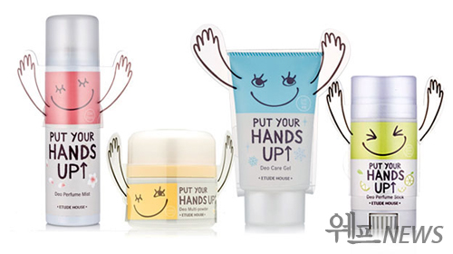 에뛰드의 ‘핸즈-업 데오도란트 4종’은 1차적으로 땀을 억제하고, 2차적으로 땀 냄새를 케어해 주는 듀얼 케어 효과의 제품으로 쉬크 플로랄향의 펄스프레이, 달콤한 베이비 바닐라향의 멀티파우더, 이중기능성의 무향 케어젤, 상쾌한 시트러스향의 스틱까지 다양한 향과 기능들로 취향에 맞게 사용할 수 있다.