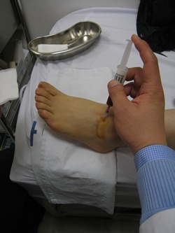 전문의의 진단 후, 발목 손상 정도가 미미한 단계라면 간단히 주사를 통해 발목 인대 및 연골 손상을 치료할 수 있다. 대표적인 주사요법이 ‘PRP(혈소판 풍부 혈장) 주사 치료’다.