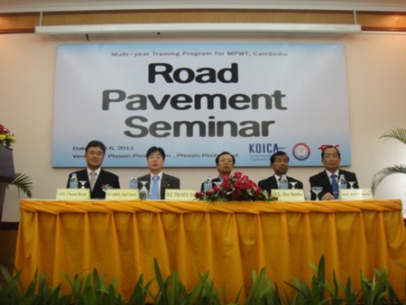 [이브닝신문/OSEN=김중기 기자] 한국국제협력단(KOICA)은 지난 6~8일 캄보디아 수도 프놈펜에서 캄보디아 도로관리 세미나를 열었다. 이 행사에는 신의철 KOICA 캄보디아 소장(왼쪽 두 번째)과 캄보디아 공공사업교통부(가운데) 등이 참석했다. KOICA는 세계문화유산 앙코르와트 유적지 보호를 위해 시엠립 한국순환도로 건설 사업을 추진하고 있다. 사진제공=한국국제협력단