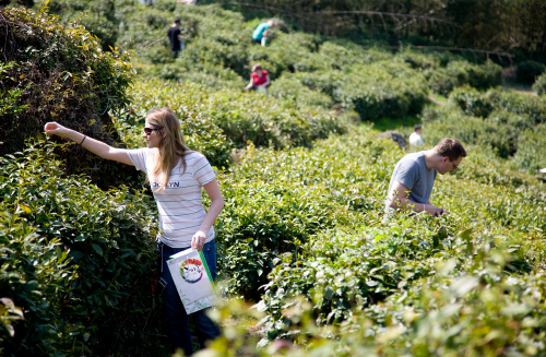 <사진> 다음달 4일 녹차의 고장 하동에서 ‘제16회 하동 야생차문화축제’가 개막된다. 올해 야생차문화축제는 4개의 테마 공간에서 8일까지 닷새간 진행된다. 사진은 지난 행사 때 찻잎 채취 체험행사에 참가한 외국인들.