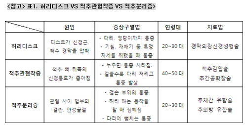 - 3대 허리질환 = 허리디스크, 척추관협착증, 척추분리증! 원인, 증상 각기 달라