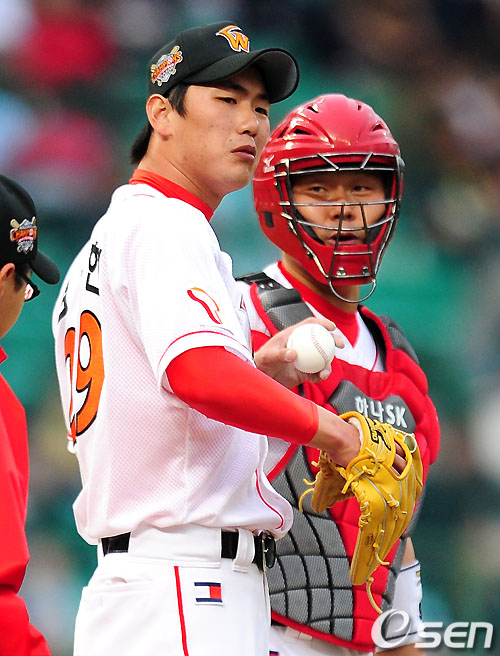 2사 3루에서 선발 고효준, 작은 이승호에 이어 마운드를 이어받은 김광현은 송지만을 헛스윙 삼진으로 돌려세워 깔끔한 모습을 보였다.