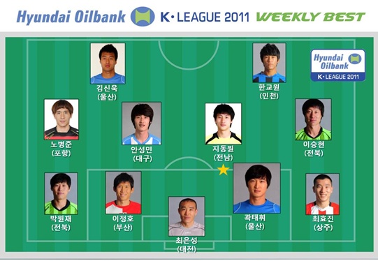 수비수 부문에는 박원재(전북), 이정호(부산), 곽태휘(울산), 최효진(상주)이 이름을 올렸으며 포항을 상대로 무실점 경기를 치른 최은성(대전)은 11라운드 최고의 골키퍼로 꼽혔다.