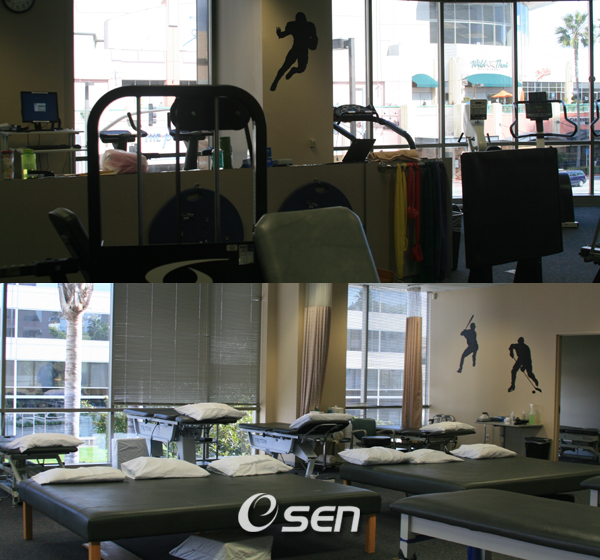 2층에는 100평이 넘는 커다란 물리치료실이 있다. 방문 당시 피츠버그 파이어리츠와 LA 에인절스 야구 선수들이 매트에서 재활 훈련에 열중하고 있었다. 10명이 넘게 동시에 치료를 할 수 있는 매트와 피트니스 클럽을 연상케 하는 수십 종류의 운동 장비들과 10여명의 재활 전문가들이 선수들의 치료를 도왔다.
