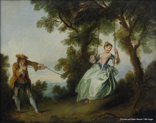 <사진>니콜라 랑크레(1690-1743)의 작품 '그네'(위)와 프로이센의 프레드리히 대왕이 그의 형제 아우구스트 빌헬름에게 준 코담배갑 선물.