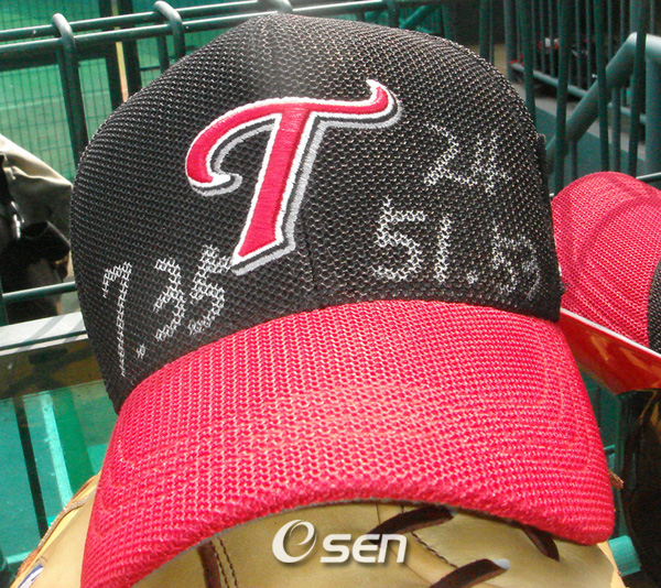 이 외에도 홍성흔은 모자에 '밀봉'이라는 글씨를 썼습니다. 지난 2월 스프링캠프 때 구단주와 방에서 나눈 대화를 비밀로 지키겠다며 '밀봉'이라로 적었습니다. 임찬규(19, LG)는 'BONG, 35. 7' 이렇게 화이트로 표시를 했습니다. 부상을 당한 봉중근, 이진영, 오지환을 생각하겠다는 뜻이죠.