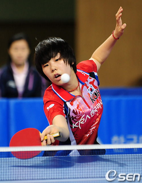 21세 이하 여자단식 1라운드에서 대한민국 유은총이 홍콩 윙남의 공을 받아내고 있다. / sunday@osen.co.kr
