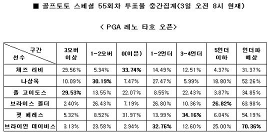 PGA 레노 타호 오픈 1라운드 대상 스페셜 55회차 투표율 중간집계 결과