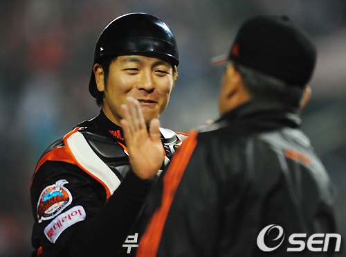 양승호 감독은 강민호에게 "볼카운트가 0-2이니까 칠 테면 쳐라"고 주문했다. 원하는 공이 들어오면 과감하게 배트를 휘둘러도 좋다고 했다. 그러나 강민호는 바티스타의 초구 몸쪽 직구를 잘 참았다. 이어 바깥쪽 직구를 흘려보내며 볼넷을 골라냈다. 양 감독은 "그게 결정적이었다. 번트를 댈지 말지 고민했는데 강민호가 볼을 잘 골라내 무사 만루를 만든 게 컸다"고 말했다.
