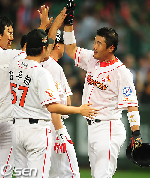 SK는 3일 문학구장에서 열린 2011 롯데카드 프로야구 LG와의 홈경기에서 9회말 터진 이호준의 짜릿한 역전 끝내기 투런포를 앞세워 5-4로 극적인 승리를 안았다.