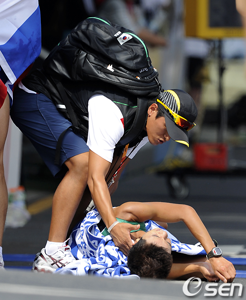 혼신의 힘을 다한 김현섭은 결승선을 통과한 후 쓰러졌고 들것에 실려 이동해야 했다.