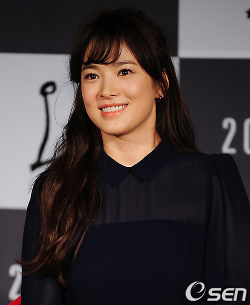 송혜교가 기자회견중 환하게 미소짓고 있다./ rumi@osen.co.kr