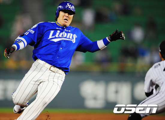 6일 오후 잠실구장에서 열린 '2011 롯데카드 프로야구' LG 트윈스와 삼성 라이온즈의 정규 시즌 마지막 경기에서 5회초 1사 주자 1,3루 삼성 최형우가 우중간 2타점 적시타를 날린 후 3루에 몸을 던지고 있다. 이날 경기는 LG 임찬규와 삼성 장원삼이 선발 맞대결을 펼친다. 삼성 오승환은 아시아 신기록 48세이브에 도전중이다. 오승환이 48세이브로 아시아기록을 수립한다면 투수 4관왕(다승`탈삼진`평균자책점`승률)에 오른 윤석민(KIA)과 타격 3관왕(홈런`타점`장타율)이 유력한 팀 동료 최형우와의 MVP 경쟁서 유리한 고지를 차지할 수 있다. 한편 이 날 LG 박종훈 감독은 성적 부진에 대한 책임을 지고 자진 사퇴를 결정했다. / rumi@osen.co.kr