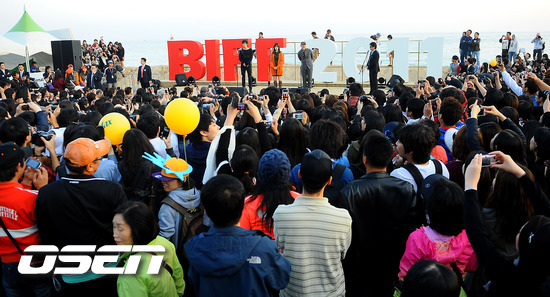 7일 오후 부산 해운대 피프빌리지에서 열린 부산 국제영화제 개막작 영화 '오직 그대만' 야외 무대인사에서 배우 소지섭과 한효주, 송일곤 감독이 소감을 말하고 있다. 영화 '오직 그대만'은 전직 복서 '철민'(소지섭 분)과 사고로 시력을 잃어가는 '정화'(한효주 분)가 만나 운명을 건 사랑을 시작하는 이야기로 송일곤 감독이 메가폰을 잡은 작품이다. 한편 아시아 최대 영화제로 떠오른 부산국제영화제는 지난 6일 부산 영화의전당 야외극장에서 화려한 개막식을 시작으로 9일 간의 대장정을 돌입했다./ soul1014@osen.co.kr.
