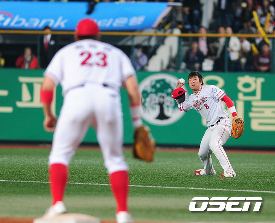 '2011 롯데카드 프로야구' KIA 타이거즈와 SK 와이번스의 준플레이오프 4차전이 12일 오후 광주 무등 야구장에서 열렸다. 2회초 선두타자 박정권의 내야안타때 KIA 안치홍 2루수가 수비를 펼치고 있다. 3선승제의 준플레이오프에서 1승 2패로 벼랑끝에 몰린 KIA는 남은 두경기를 모두 이겨야만 플레이오프에 진출할 수 있는 상황이다. 이에 KIA는 1차전에서 완투승을 거둔 윤석민이 3일 휴식 후 바로 선발 등판시켰다. 시리즈 전적 1승2패로 몰린 KIA의 경우 윤석민의 등판 시점을 하루 앞당겼다. 조 감독의 얼쩔 수 없는 무리수다. 한편 SK는 이만수 감독대행은 5차전에서 에이스 김광현을 등판시키기로 했다. 2승1패로 앞선 만큼 4차전을 내주더라도 5차전에서 에이스 김광현을 투입해 승리할 수 있다는 자신감을 보여줬다. 지난 1~3차전에서 보여주듯 철저한 투수전 양상으로 흐르는 준플레이오프에서 SK는 강점인 불펜의 힘을 극대화 하고, KIA는 불펜의 약점을 얼마나 상쇄할 수 있느냐가 관건이다. 또 양 팀 모두 극도의 빈타에서 탈출해야 한다. 앞서 SK는 시즌 종반 김성근 전 감독의 사퇴로 내홍을 앓았고 KIA는 시즌 중반 1위에서 4위로 떨어지는 심각한 성적 하락을 겪은 바 있다. 한편 프로야구 준플레이오프는 5전 3선승제로 진행된다. 8~9일 인천 문학구장에서 2연전이 진행됐고, 11~12일 광주구장에서 3, 4차전이 이어진다. 4차전까지 승부를 가리지 못하면 14일 문학구장으로 돌아와 최종전을 벌인다. / ajyoung@osen.co.kr