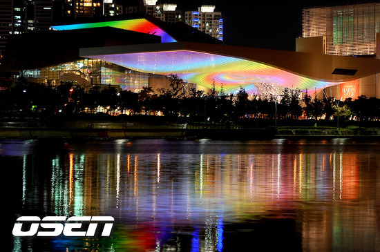 13일 오후 제16회 부산국제영화제 폐막을 하루 앞둔 부산 해운대구 영화의 전당의 야경이 밝게 빛나고 있다. 부산국제영화제를 위해 지어진 영화의전당은 시네마운틴, 피프힐, 더블콘 등 총 3개의 건물로 구성돼 있고 더블콘에서 뻗어 나온 지붕(빅루프) 이 한쪽 기둥만으로 받치고 있는 것이 특색이다. 또 지붕에는 LED조명이 설치되어 있어 화려하고도 우아한 영화의전당 조명을 감상할 수 있다. / soul1014@osen.co.kr