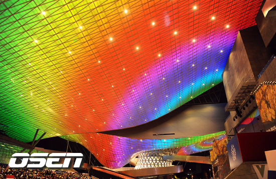 13일 오후 제16회 부산국제영화제 폐막을 하루 앞둔 부산 해운대구 영화의 전당의 야경이 밝게 빛나고 있다. 부산국제영화제를 위해 지어진 영화의전당은 시네마운틴, 피프힐, 더블콘 등 총 3개의 건물로 구성돼 있고 더블콘에서 뻗어 나온 지붕(빅루프) 이 한쪽 기둥만으로 받치고 있는 것이 특색이다. 또 지붕에는 LED조명이 설치되어 있어 화려하고도 우아한 영화의전당 조명을 감상할 수 있다. / soul1014@osen.co.kr