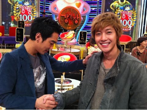 [OSEN=김경주 인턴기자]가수 겸 방송인 고영욱이 SBS '강심장' 100회 특집 녹화에서 김현중과 함께 찍은 사진을 공개했다. 고영욱은 14일 오전 자신의 트위터를 통해 "아까 '강심장' 100회 특집 녹화 때 핸섬가이 둘?"이라는 글과 함께 한 장의 사진을 게재했다. 사진 속 고영욱은 '강심장' 세트를 배경으로 김현중과 악수를 하며 고개를 숙이고 있는 모습이다. 반면 김현중은 카메라를 향해 자신있는 표정으로 웃고 있어 둘의 상반된 모습이 웃음을 자아내고 있다. 이를 본 네티즌은 "핸섬가이 한 명과 올드보이 한 명 아닌가?", "보기만해도 행복한 둘"라는 반응을 보이고 있다. 한편 고영욱은 '하이킥! 짧은 다리의 역습'에서 만년고시생의 연기를 펼치며 시청자들의 많은 사랑을 받고 있다. trio88@osen.co.kr ☞ hoppin 동영상 바로보기 고영욱 트위터.