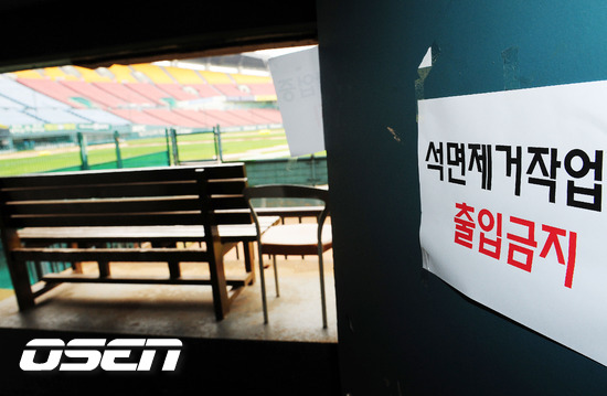 14일 오후 서울 잠실구장에서 그라운드의 흙을 걷어내고 새 흙으로 교체 작업을 진행하고 있다. 지난 9월 26일 환경보건시민센터가 서울 잠실 등 국내 5개 야구장의 홈베이스와 주루 등에서 1급 발암물질인 석면이 검출 됐다고 발표한 가운데 잠실야구장은 지난 7일부터 교체를 시작해 한국시리즈 직전인 22일까지 작업을 끝낼 예정이다./jpnews@osen.co.kr