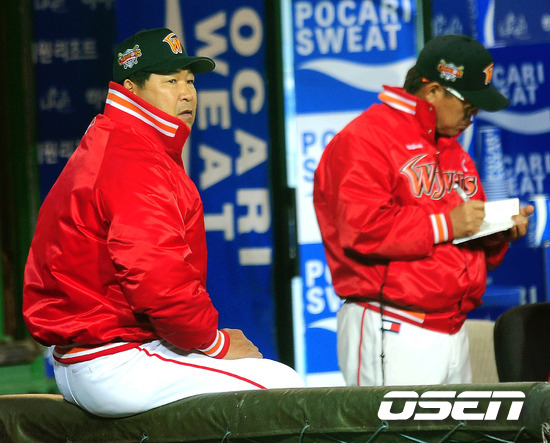 롯데가 지긋지긋한 포스트 시즌 연패의 늪에서 벗어나며 부산 팬들에게 기쁨을 선사했다. 9회초 패색이 짙어지자 이만수 SK 감독이 담담한 표정으로 경기를 지켜보고 있다. 17일 오후 부산 사직구장에서 벌어진 2011 롯데카드 프로야구 플레이오프 2차전서 롯데는 송승준의 1실점 역투와 전준우의 투런 홈런,강민호의 쐐기 솔로 홈런으로 SK에 4-1로 승리를 거두었다. 덕분에 롯데는 지난 1999년부터 이어진 포스트시즌 홈 연패에서 벗어났다. 무려 4378일 만의 포스트 시즌 승리다. 한편 프로야구 플레이오프는 5전 3선승제로 진행되며 19일 오후6시에 인천 문학경기장에서 3차전 경기를 갖게 된다. /spjj@osen.co.kr