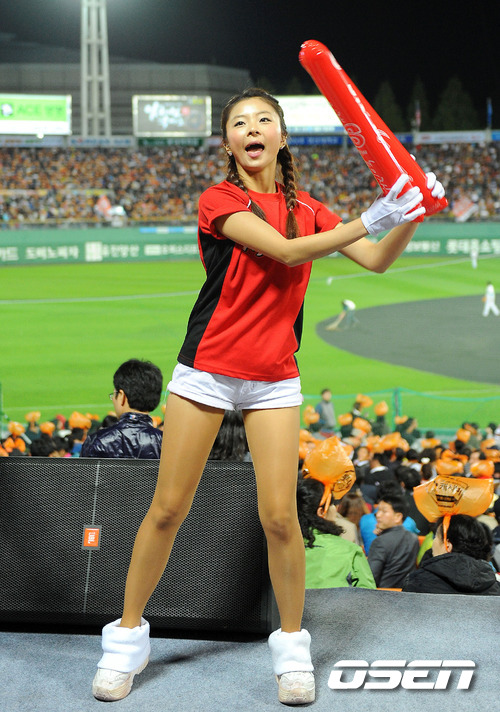 2011 롯데카드 프로야구 플레이오프 2차전, SK 치어리더가 화려한 무대를 선보이고 있다. 17일 부산 사직구장에서 벌어진 플레이오프 2차전서 롯데는 양승호 감독이 예고한대로 송승준을 SK 이만수 감독은 고든을 각각 선발로 내세웠다. 송승준은 유독 SK에 시즌 내내 약세를 보여왔지만 양승호 감독은 선발로 밀어부치는 뚝심을 보여 결과가 어떻게 나올지 주목된다. 한편 1차전은 SK가 연장 10회 접전 끝에 롯데에 7-6의 기분좋은 역전승을 거두며 기선제압에 성공했다. 과연 2차전에서 송승준이 감독의 믿음에 부응, 위기의 팀을 구해 지긋지긋한 가을 악몽을 떨쳐낼지 아니면 SK 고든이 준플레이오프 상승세를 이어가며 2연승을 이끌지 관심이 집중된다. / sunday@osen.co.kr