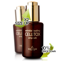더스킨하우스(www.theskinhouse.co.kr)는 주름개선에 도움을 주는 링클 힐링 셀톡스 앰플을 점보 사이즈로 선보였다. 기존 제품보다 용량은 두 배로 늘리고 가격은 2/3로 낮춘 링클 힐링 셀톡스 앰플 점보는 용량의 아쉬움을 가진 소비자들을 위해 기획됐다. 더스킨하우스 관계자는 “주름관리 제품인 셀톡스 앰플에 많은 관심에 힘입어 적은 용량을 아쉬워했던 고객들을 위해 용량은 2배 늘리고, 가격은 다운된 점보 사이즈를 출시 하게 됐다”며, "고가의 주름관리 제품에 뒤지지 않는 제품력으로 사용자들의 만족감을 이끌어 낸 링클 힐링 셀톡스 앰플은 제품의 신뢰도를 높이기 위해 임상실험에 들어갔다"고 전했다. 한편 더스킨하우스는 여러 문화 이벤트와 주말특가 이벤트, 구매금액별 사은품 증정 이벤트 등을 진행 중이다. silver11@osen.co.kr