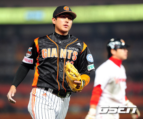 2011 롯데카드 프로야구 플레이오프 SK 와이번스와 롯데 자이언츠의 경기 7회말 1사 1,3루 정근우의 잘맞은 타구를 점프 캐치한 롯데 3루수 황재균이 3루주자 김강민도 아웃 시킨 후 의기양양하게 덕아웃으로 가고 있다. 19일 문학구장에서 벌어진 3차전서 SK는 송은범을 롯데는 사도스키를 내새워 한국시리즈로 가는 중요한 일전을 벌인다. 양팀은 1차전서는 연장 접전 끝에 정상호의 홈런을 앞세운 SK가 2차전서는 송승준의 역투와 전준우의 투런 홈런으로 롯데가 승리를 거두어 사이좋게 1승씩을 나누어 가졌다. SK 이만수 감독은 플레이오프 3차전을 앞두고 타순 조정을 통한 필승의지를 다졌다.이 감독은"박정권이 4번, 안치용이 5번, 그리고 최동수가 지명타자로 6번으로 배치 필승의 의지를 다졌다. 롯데 양승호 감독은 '선수들이 많이 성숙해졌다. 1차전서 그렇게 지고 위축될 줄 알았는데 2차전을 승리로 이끌었다'며 선수들을 칭찬 했다. /spjj@osen.co.kr