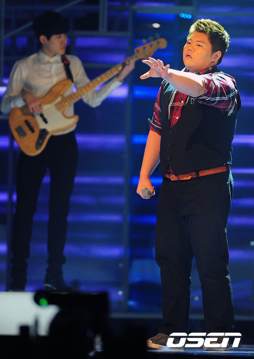 21일 밤 서울 경희대학교 평화의 전당에서 열린 Mnet ‘슈퍼스타K3’ 네 번째 생방송 무대에서 김도현이 열창을 하고 있다.