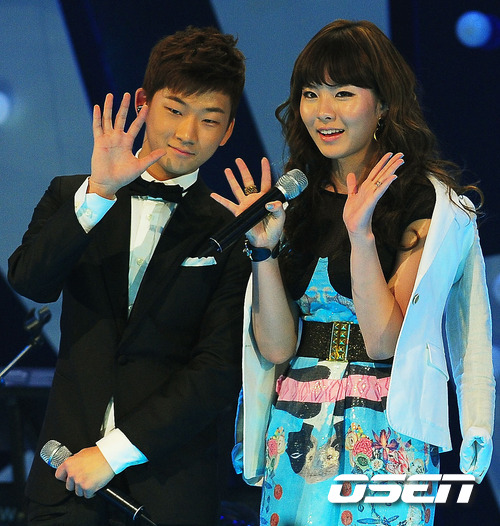 21일 밤 서울 경희대학교 평화의 전당에서 열린 Mnet ‘슈퍼스타K3’ 네 번째 생방송 무대에서 투개월이 사인을 보내고 있다.