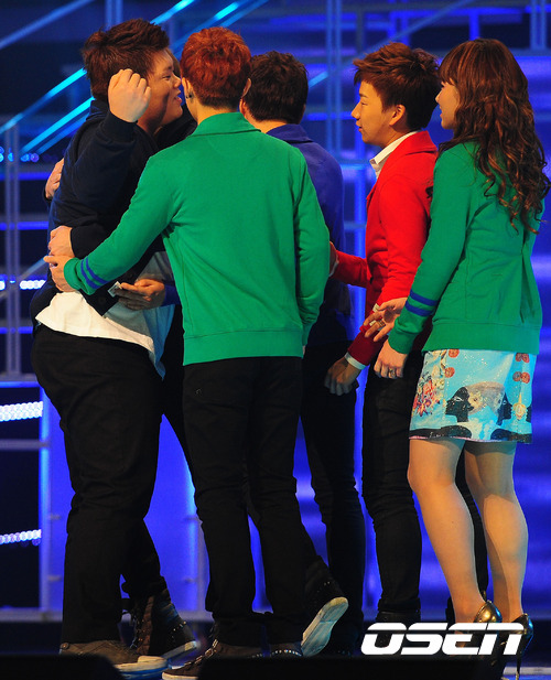 21일 밤 서울 경희대학교 평화의 전당에서 열린 Mnet ‘슈퍼스타K3’ 네 번째 생방송 무대에서 김도현의 탈락이 확정된 후 서로 포옹을 하며 위로하고 있다.