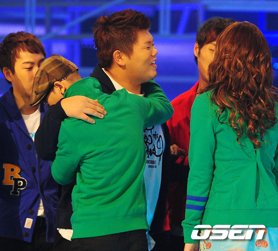 21일 밤 서울 경희대학교 평화의 전당에서 열린 Mnet ‘슈퍼스타K3’ 네 번째 생방송 무대에서 김도현의 탈락이 확정된 후 서로 포옹을 하며 위로하고 있다.