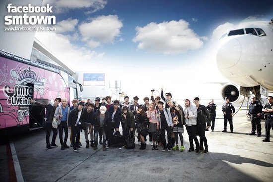 SM 엔터테인먼트의 소속 가수들이 비행기 앞에서 옹기종기 모여 찍은 사진이 SM타운 공식 페이스북에 24일 새벽 공개됐다.