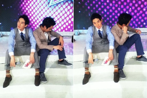 가수 고영욱과 방송인 붐이 방송 촬영 중 지친 모습을 공개했다.