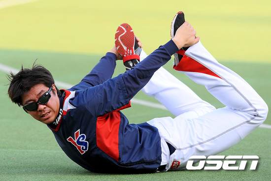 25일 오후 일본 도쿄 진구구장서 열리는 센트럴리그 야쿠르트 스왈로스와 히로시마 토요카프의 경기전 야쿠르트 임창용이 스트레칭을 하고 있다.