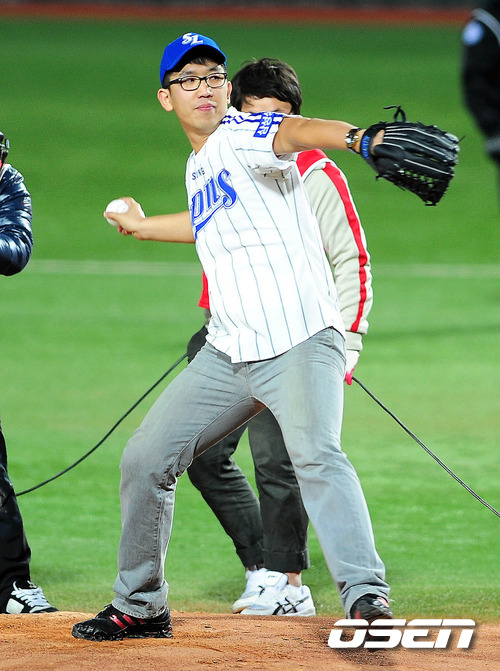 '2011 롯데카드 프로야구 한국시리즈'삼성 라이온즈와 SK 와이번스 경기 1차전서 고인이 된 장효조의 아들 장의태가 시구를 하고 있다