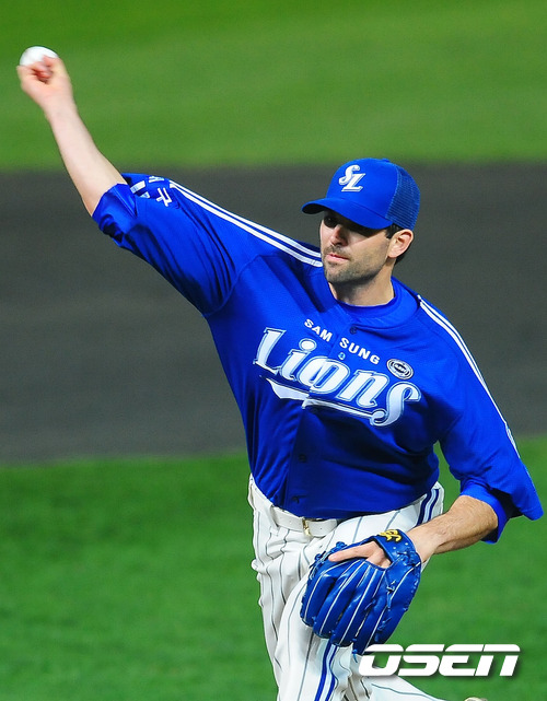 '2011 롯데카드 프로야구 한국시리즈' 3차전 SK 와이번스와 삼성 라이온즈의 경기 삼성 선발 저마노가 힘차게 공을 뿌리고 있다.