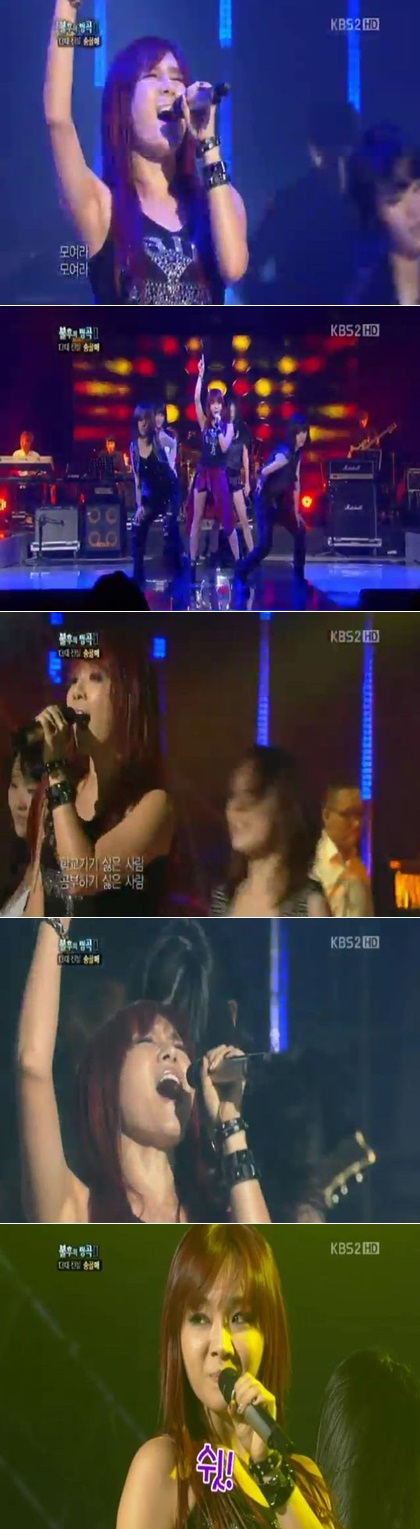 가수 임정희가 '4단 고음'을 곁들인 송골매의 '모여라'를 열창했다.